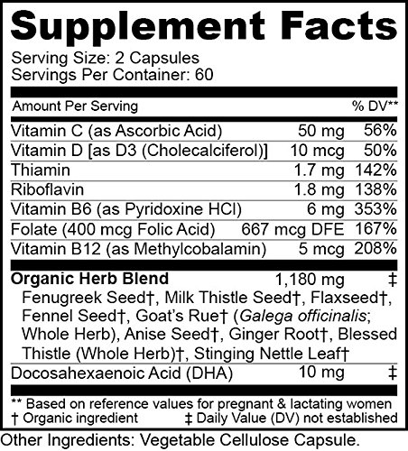 -. Title : HMS Nutrition Organic Lactation Support Mother's Breast Feeding Aid Premium Vitamins and Organic Herb Formula 120 Count 2 Month Supply Fenugreek Milk Thistle Flaxseed Fennel Seed Goat's Rue