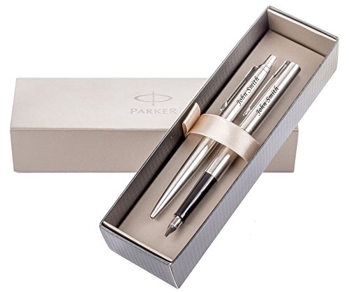 -. Title : Personalized Gifts - SET PARKER BALLPOINT PEN & FOUNTAIN PEN JOTTER with gift box - Laser Engraved FREE with your text or name, Ideal Anniversary, Christmas, Wedding, Birthday or Gift Idea, Gifts for men, Gifts for woman - SILVER
