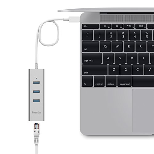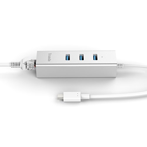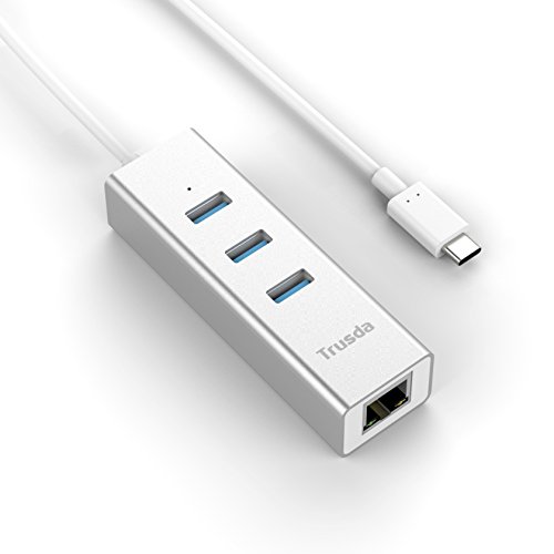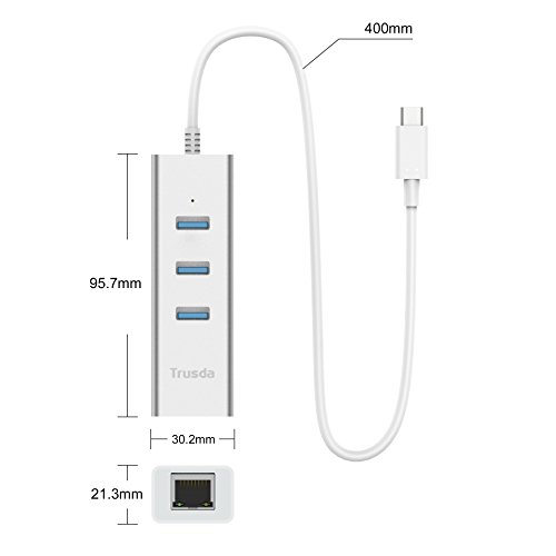 PACKAGE CONTENT: Trusda USB-C to Ethernet Adapter with 3-Port USB 3.0 Hub (with 1.3ft USB 3.0 cable), Instruction Manual, 18-month warranty and friendly customer service