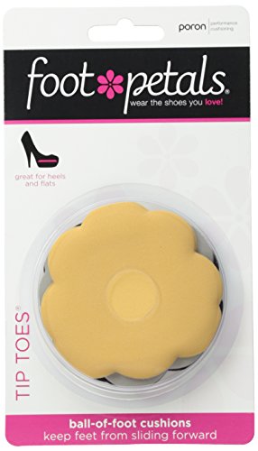 Unique flower-shaped ball-of-the-foot cushions are specifically targeted for use inside the shoe.