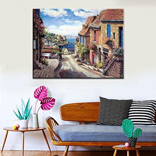 -. Title : FASKUNOIE®The Mediterranean Sea Beach Resort Landscape Exquisite Home Decor Seascape Modern Abstract Oil Painting on Canvas
