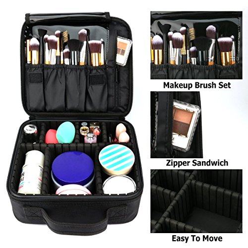 - Smart Make Up Organizer: Main compartment includes 6 adjustable EVA dividers, DIY your needed slots; Makeup brushes holder with plastic cover, give your brushes a safe "home", it is easy to wipe clean; Hidden zipper pocket for privacy items.. An ideal gifts for women girls.