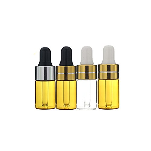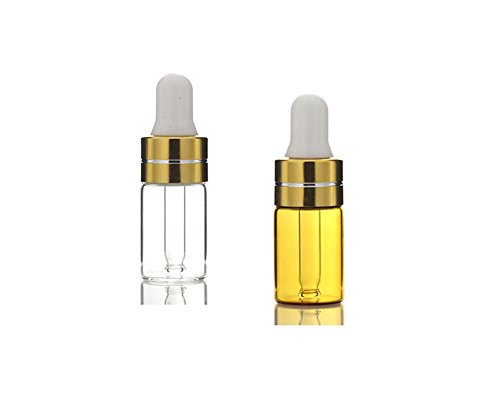 3ml 24Pcs Empty Upscale Refillable Amber/Clear Glass Massage Oil Essential Oil Elite Fluid Cosmetics Sample Dropper Bottles Vial Jar Pot Container Holder (C)