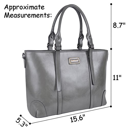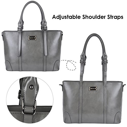 -. Feature : Superior Quality-Laptop bag made of smooth PU leather and zippers closure, water resistant and durable, keeps this elegant handbag in shape, and makes it durable for long time use / Product Dimensions-15.4"L x 5.3" W x 11" H, handle strap drop: 8.7", suitable most 15.6 inches Laptop /Notebook /MacBook /Ultrabook /Tablet, ideal choice for work, college, school, travel, business trip / Multi-Pockets-Laptop bag included 1 main soft foam and velcro strap pocket,1 zip compartment, other two compartments. Plenty of space for A4 books and daily items, 2 slip pockets and 1 zip pocket for your cell phone, cards mouse etc. 1 backwall zip pocket for your keys / Professional Design-The main compartment for laptop with soft foam padding to protect your laptop or tablet from shockall-round protection notebook safety, not only professional but also very stylish for women work business everyday us / Adjustable Strap-Adjustable shoulder straps and very comfortable adjustable top handles, perfect length is comfortably carrying by hand or shoulder