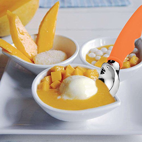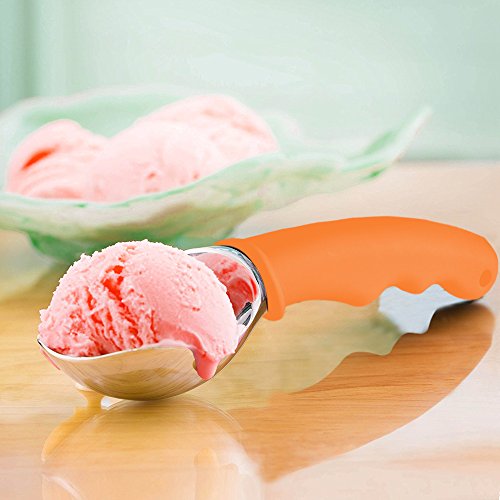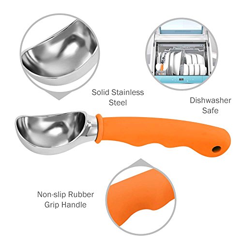Ice Cream Scoop, Koncle Cookies Scoop Stainless Steel Melon Scoop Spoon, Non-slip Rubber Grip Ice Scoop Set with Strong Handle for the Hardest Ice Cream, Frozen Yogurt, Fruit, Coffee (Orange)