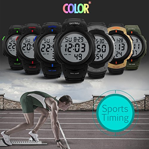 -. Title : BesWlz メンズ 腕時計スポーツデジタルLEDディスプレイ防水ストップウォッチアラーム機能カジュアルルミナスシンプルなアーミーウォッチ