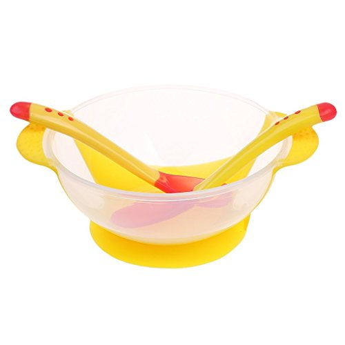 -. Title : Homeland 赤ちゃん 幼児 転倒防止 吸盤ボウル 温度感知スプーン フォーク 3個 食器セット  - 黄