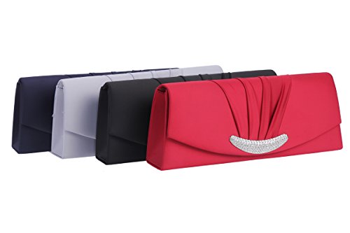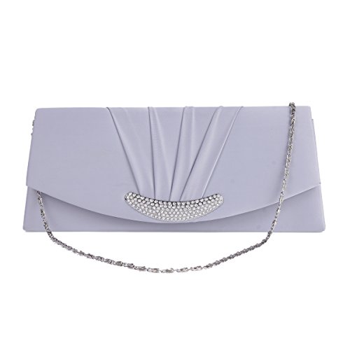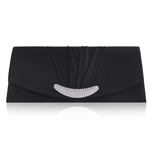 Product Description Add a touch of elegance to any evening dress with this rhinestone embellished clutch bag.The classy evening bag is made from satin and features generous pleats and?sparkling rhinestones on the front,an snap closure .This clutch bag has a fully lined interior that offers storage for your cell phone, lipstick, cash and credit cards, and other accessories.The interior is detailed with a small pocket while there is a detachable chain that provides versatile carrying options to suit your personal style.Dimensions: 25.5x10x5.5cm (10.03x3.93 x2.16in),chain is app 47.24" (120cm). 0