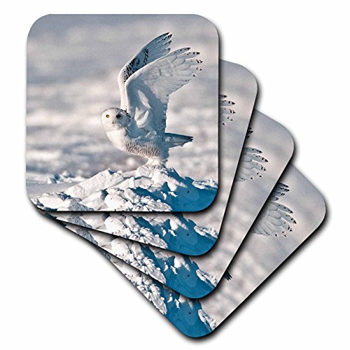 3dRose USA, Minnesota, Vermillion. Snowy Owl Taking off from Snow. - Soft Coasters, Set of 4 (cst_206579_1)