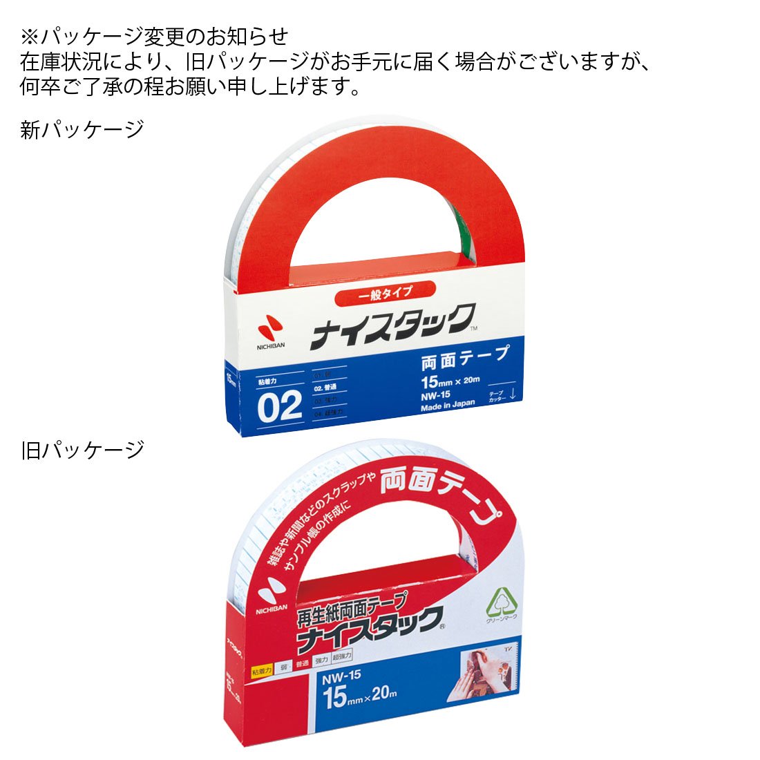 1 X NICHIBAN recycled paper double-sided tape NICETACK general type 15mm x 20m Shinji NW-15 (japan import)