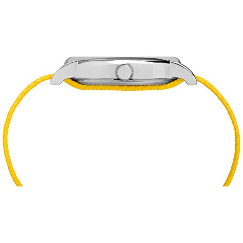 Brand, Seller, or Collection Name:Timex Model number:TW2R41100 Part Number:TW2R41100JT Item Shape:Round Dial window material type:Mineral Display Type:Analog Clasp:Buckle Case material:Brass Case diameter:37.6 millimeters Case Thickness:8.9 millimeters Band Material:Nylon Band length:Unisex Band width:0.8 inches Band Color:Yellow Dial color:White Bezel material:Brass Bezel function:Stationary Item weight:1.60 Ounces Movement:Analog quartz Water resistant depth:100 Feet
