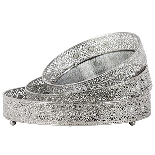 - Set of three beautifully pierced round trays with mirror surface