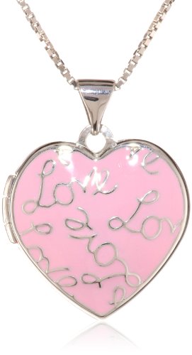 Sterling Silver Pink Enamel Heart "Love" Locket. Comes with an 18" chain.