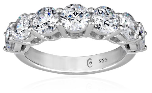 Platinum-Plated Sterling Silver Swarovski Zirconia Round 7 Stone Ring (3 cttw), Size 6