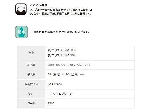 의자 카 침낭 DOWN PLUS RECTA 200 다운 플러스 lek다 200 ISU1392 플래시 그린(30)