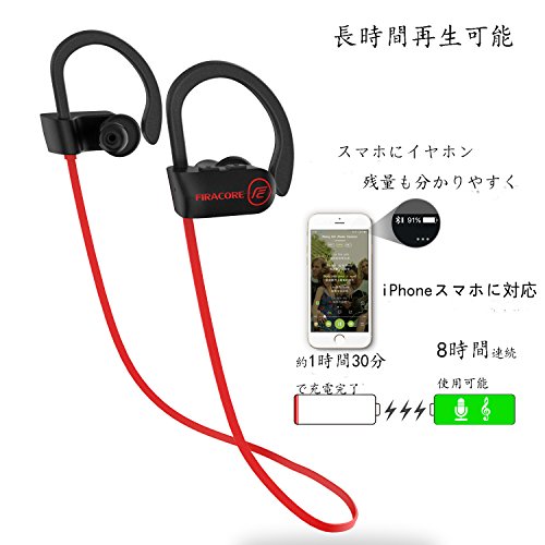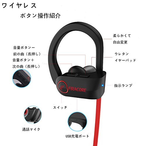 블루투스 이어폰 Firacore wireless 스포츠 헤드폰 고음질 IPX7방수 마이크 내장 최대8시간 재생 CVC6.0노이즈 캔슬 탑재 1년간 보증