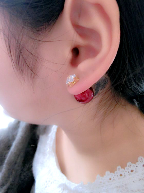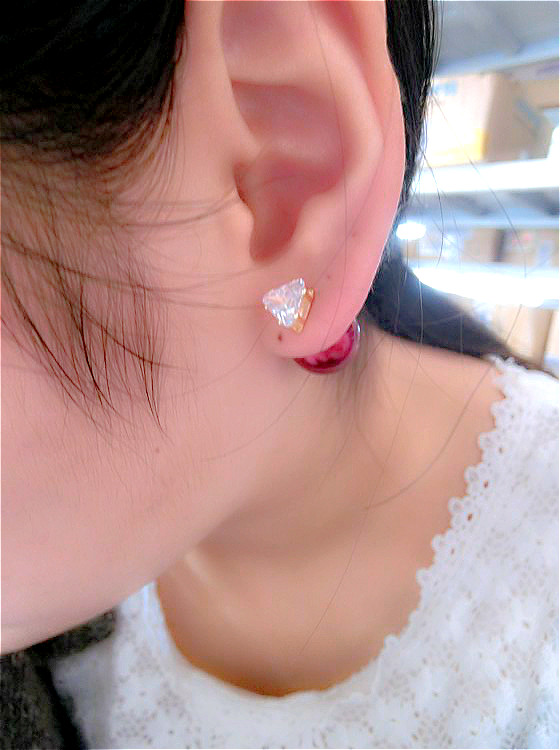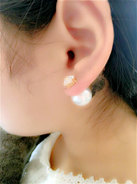 Pearl ball diameter: 1.6 cm, triangular diamond: 0.9 cm