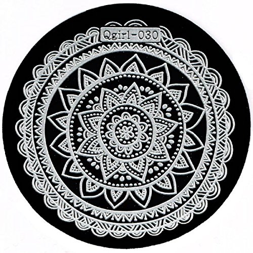 - Feature : ATTENTION: Each plate is protected by very thin clear film. Peel it off to reveal scratchless shiny surface!!! / 4 image plates. About 5-9 designs per plate / Diameter: 5.6cm. Weight: 7.4 gram / Create beautiful multi color designs.
