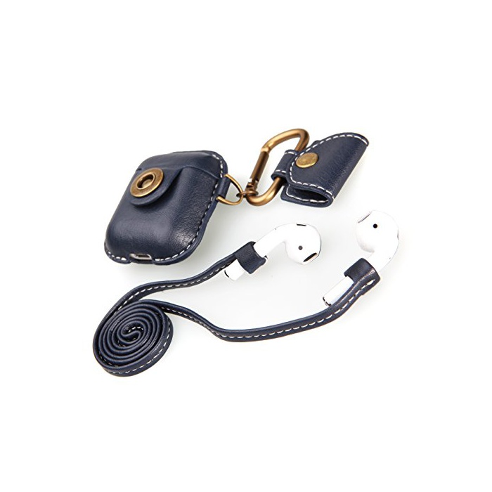 Acase Airpods 케이스 고급PU합성 가죽 가나 빌라 부착 운반 쉽 분실 방지 낙하 방지뉴 부착 충전하기 쉽다다,확실히 보호 가능 (네이비) [병행수입품]