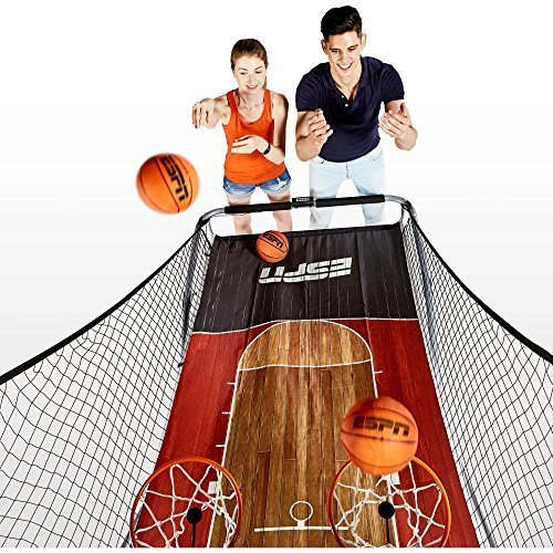 Studio : ESPN Publisher : ESPN Binding : Misc. Product Description The ESPN EZ-Fold 2-Player Basketball Game is a great option for basketball enthusiasts of all ages. This game features a new folding design that is easy to use and offers improved storage space saving as compared to other arcade basketball games. There are eight different games options built-in to the electronic scoring system which can be played by one or two players. The sturdy 1-1/2-inch metal frame and 12-inch steel rims are durable and made to withstand years of play. This foldable basketball game comes with what you need to get started, including four basketballs and an air pump. It is easy to store away when not in use. Keep your family active even when you're enjoying a day at home with the ESPN EZ-Fold 2-Player Basketball Game. EZ-Fold 2-Player Basketball Game - Foldable design for easy storage