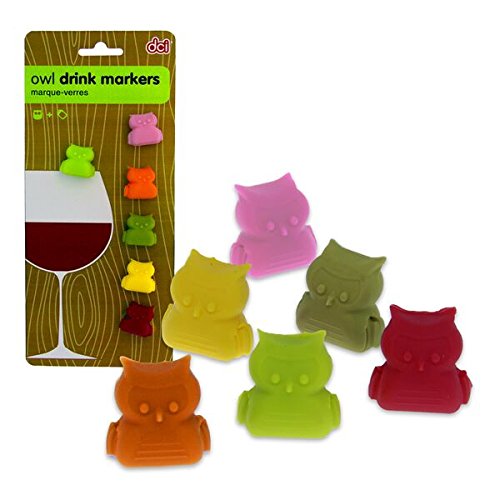 -. Feature : Fun, colorful way to distinguish your wine glass / Owl snuggly sits on rim of wine glass / Set of 6 drink markers / Made of silicone / Great hostess gift