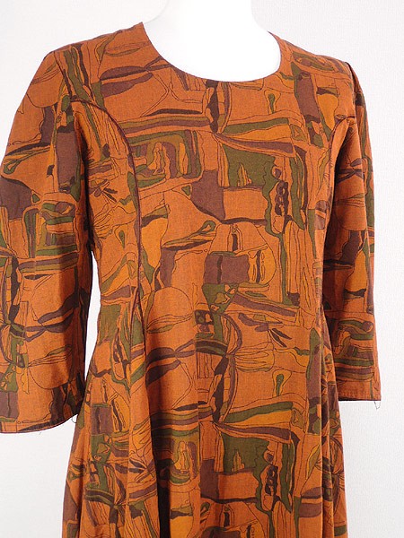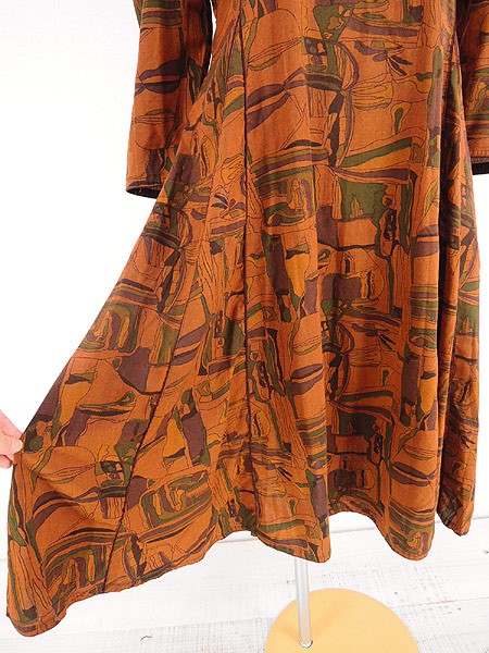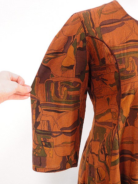 Ladies ブランド- カラー茶系 メール便不可 コンディション★★★ 素材コットンと思われます。 表記サイズ記載なし 実寸サイズ 着丈 99 cm 身幅 42 cm 肩幅 33 cm 袖丈 43 cm ※ウエスト・ヒップ以外は平置き採寸【code】#c