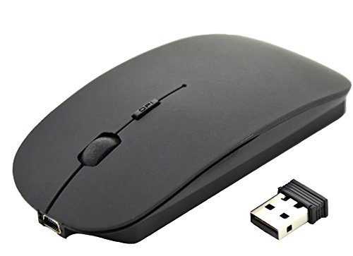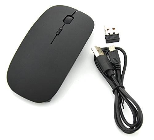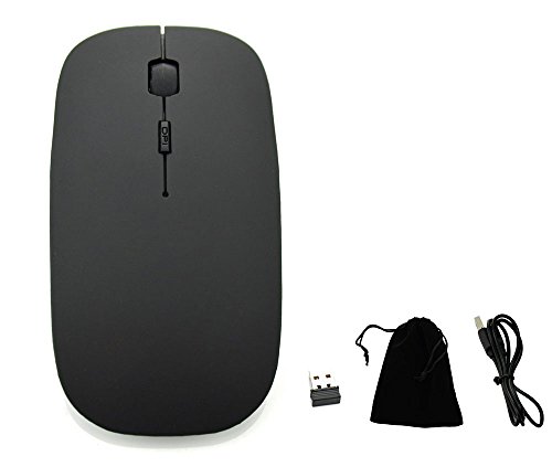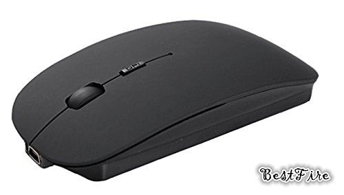 BestFire® Ultra-thin Soundless Rechargeable 2.4GHz Wireless Optical Mouse Built-in 830mAh Battery with Free Mouse Pad for PC Computer Desktop Laptop Smart TV etc. (Black)