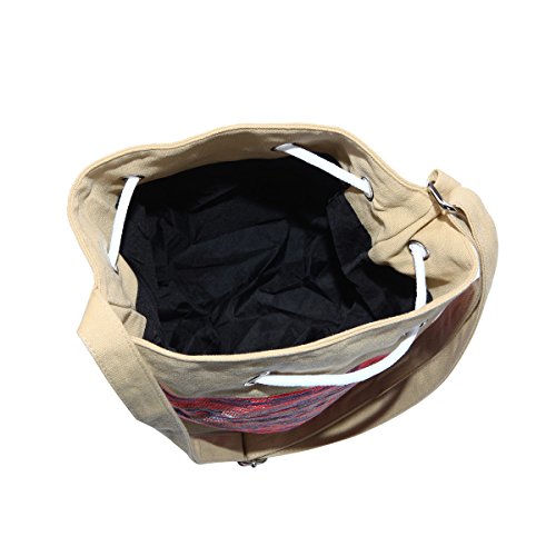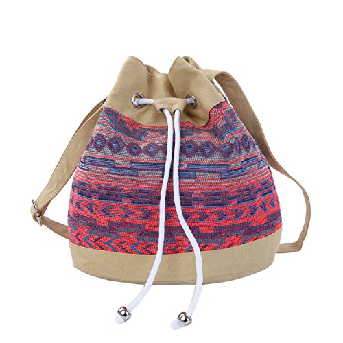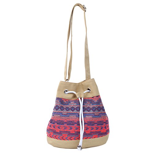 Product Description This high quality canvas drawstring bucket bag is both stylish and unique. Trendy Bohemian tribal Aztec patterned with fine craftsmanship. Soft inner fabric. Top drawstring closure. Interior zipper pocket. Fabric lining. The size is 11" (L) x 10.5" (H) x 6" (W). Adjustable sturdy shoulder strap with up to 23" drop, can be worn comfortably over the shoulder or across the body. Lightweight and functional, roomy enough for all daily essentials. Casual luxury at its best. Prefect for everyday use. A must have for all handbag lovers. 0