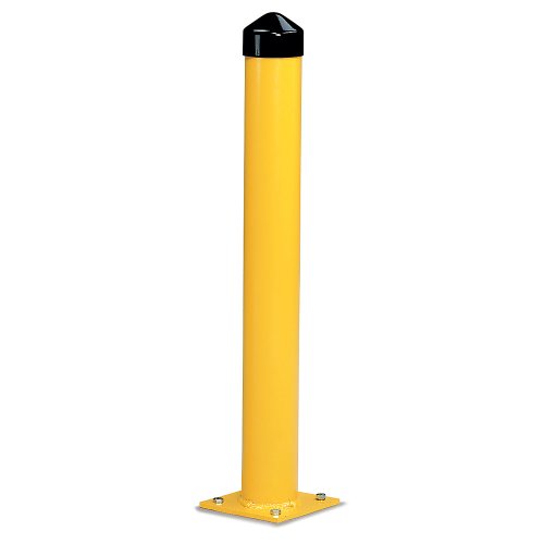 Eagle 1744 4" Steel Round Bollard Post with Black HDPE Cap, Yellow Powder Coat Finish, 42" Height, 4.5" Diameter