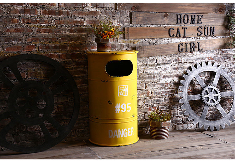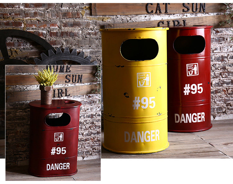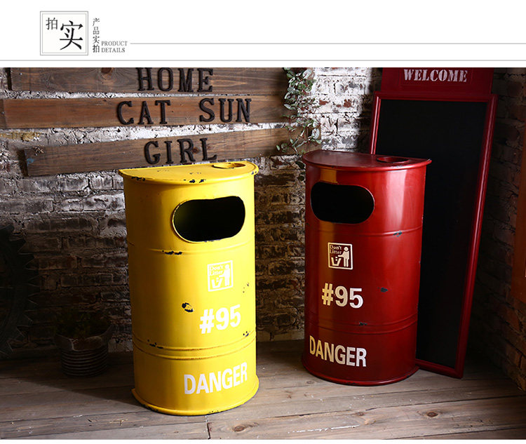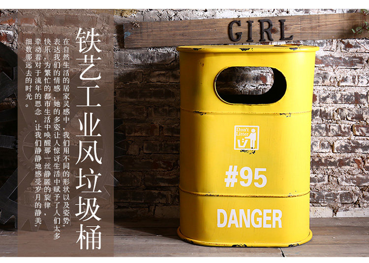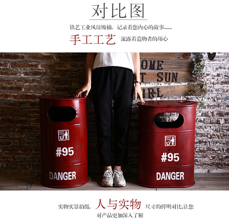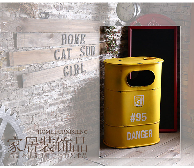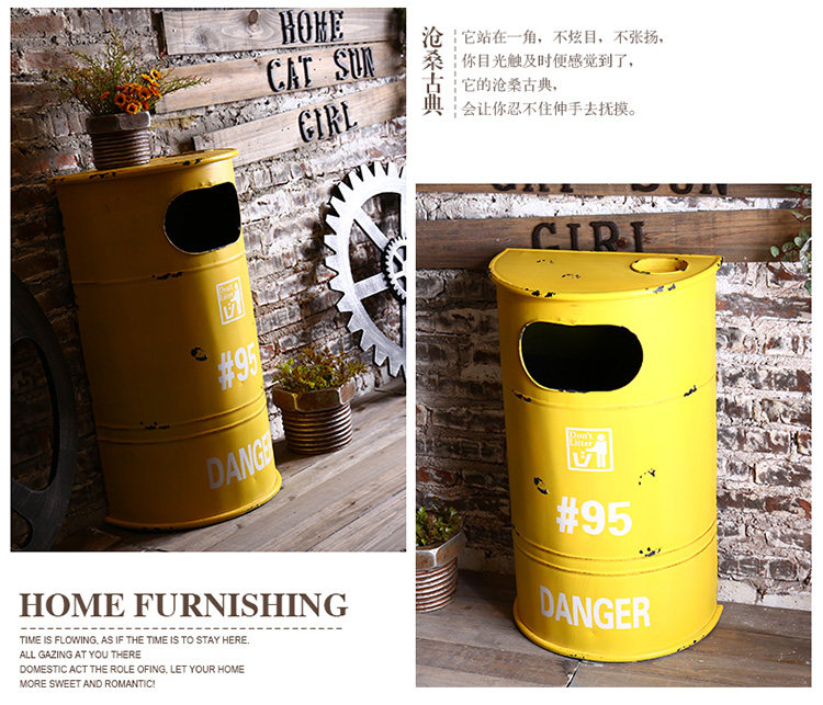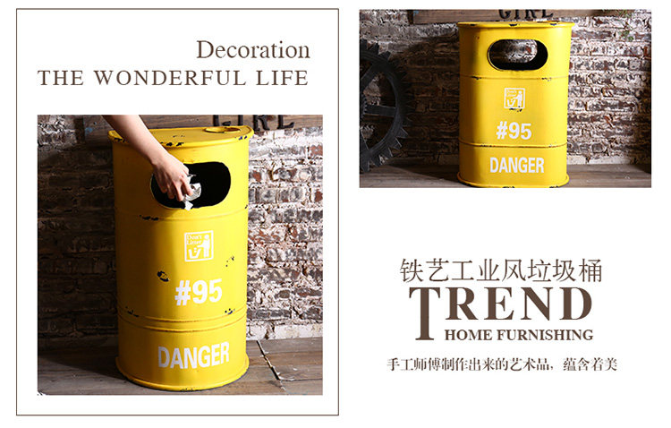 美式复古铁艺工业风垃圾桶创意收纳桶落地摆件家居软装饰品垃圾箱