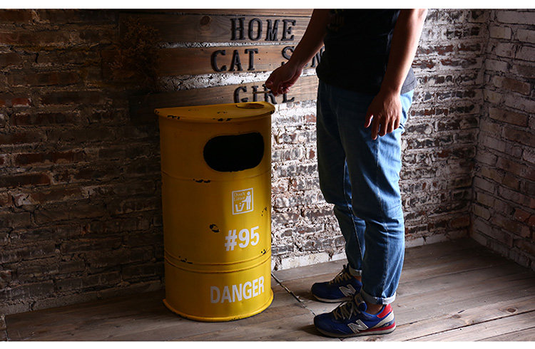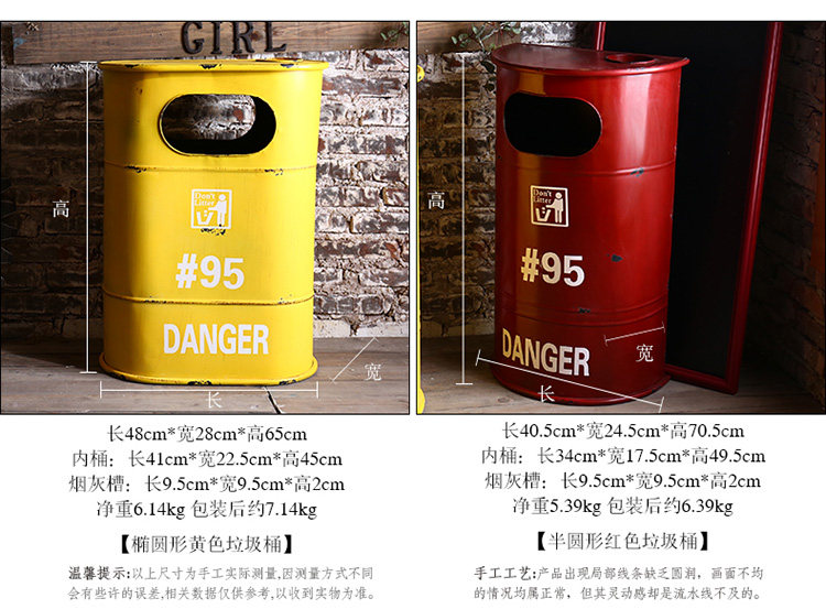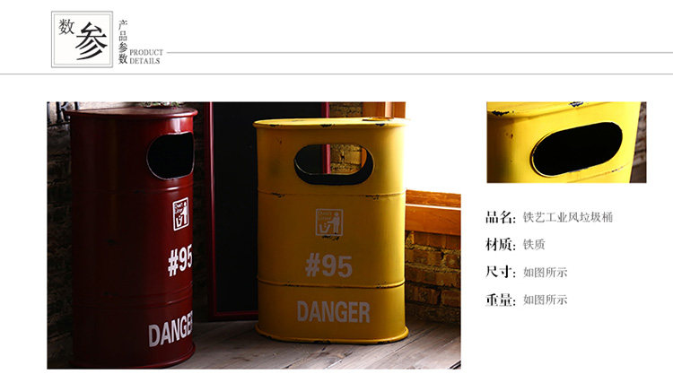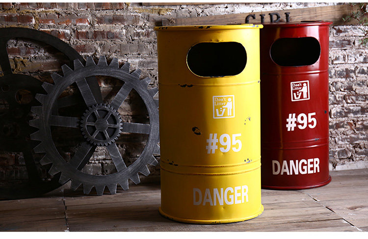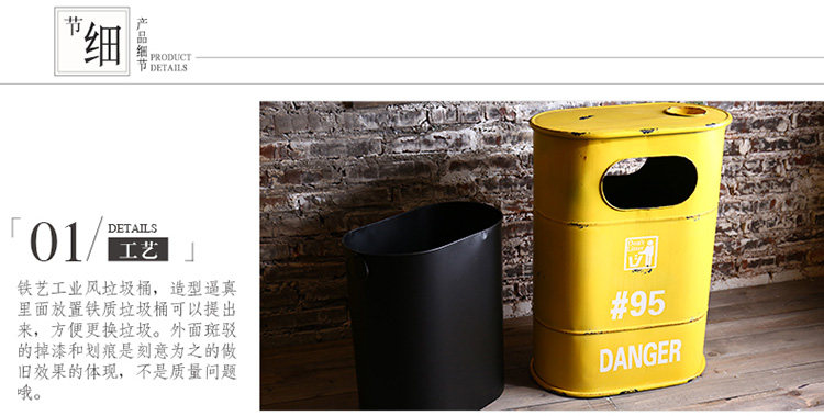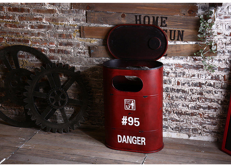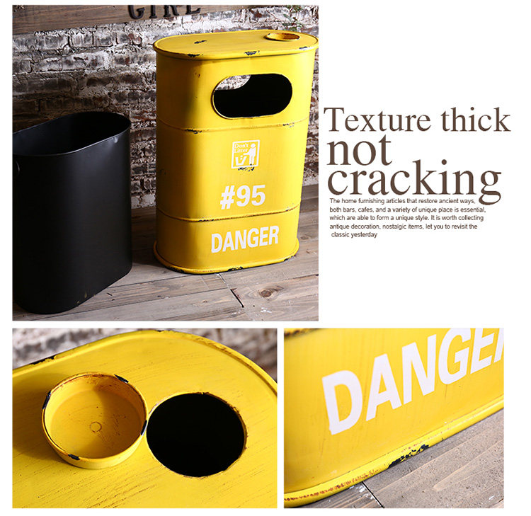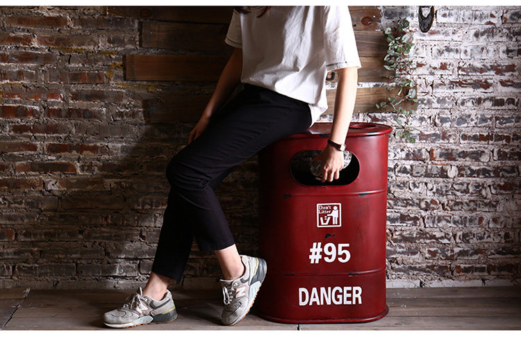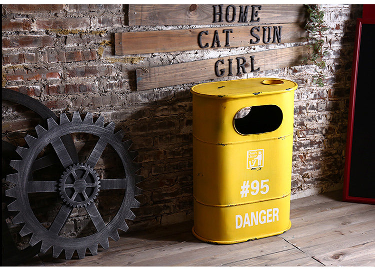 美式复古铁艺工业风垃圾桶创意收纳桶落地摆件家居软装饰品垃圾箱