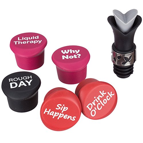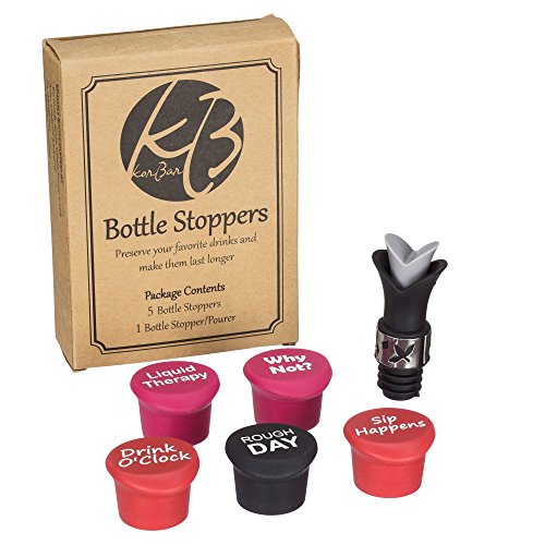 The Korbar Bottle Stopper Set comes packaged in a set of 5 stoppers and 1 Stopper/pourer making it the ideal gift for birthdays, weddings, housewarmings anniversaries, party favors, bachelorette bags, and more... PRODUCT DETAILS: - 100% Food-Grade Safe Silicone.