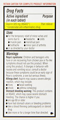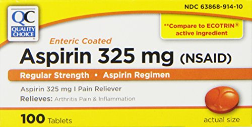Product DescriptionQuality Choice Regular Strength Enteric Coated Aspirin for temporary relief of arthritis pain and inflammation0