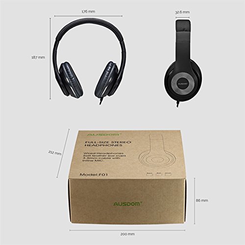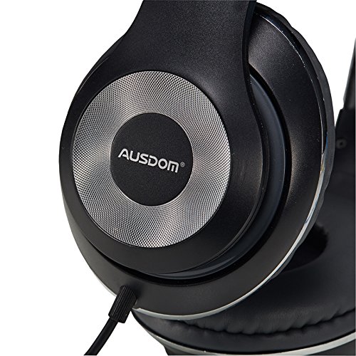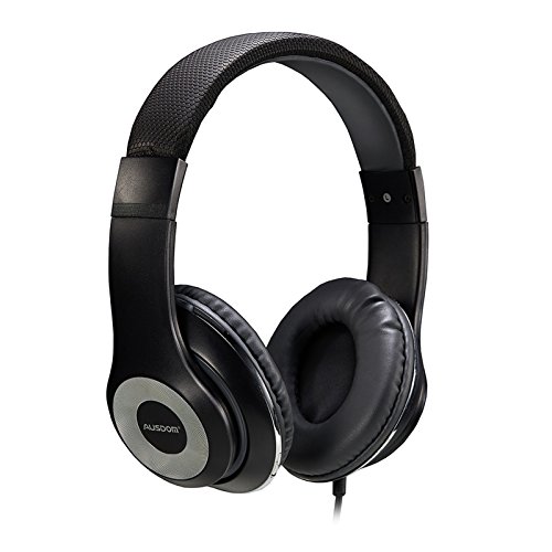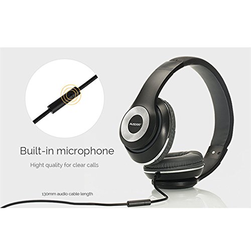 Ausdom F01 Lightweight Over-ear Wired Stereo Headphones with Built-in Mic for Hands-free calling on PC MP3 MP4 iPod iPhone iPad Tablet (Black)