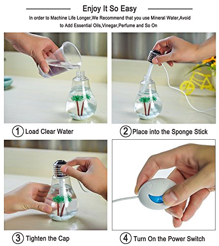 - Using USB to illuminate the bulb humidifier, there are a number of color changes, and at night it can be a great night light