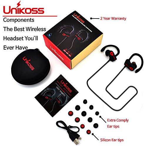 UNIKOSS Best Bluetooth Headphones- Hands-Free, Perfect for outdoor with IPX7 waterproof, Wireless Over Ear Earbuds- Noise Reduction Headphones With Mic- Best Cordless Headset For Running, Sports, iPad