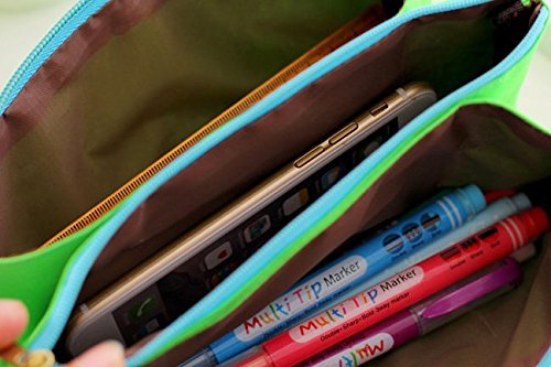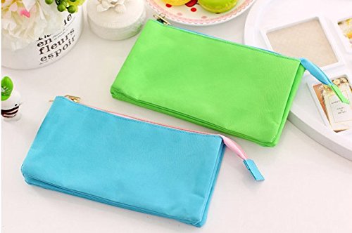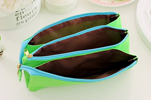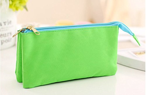 Funny liveContracted Canvas Multi-functional Pencil Case Three Layers Of Large Capacity Zipper Makeup Bag (green)