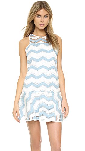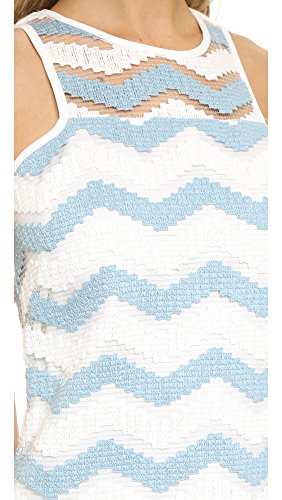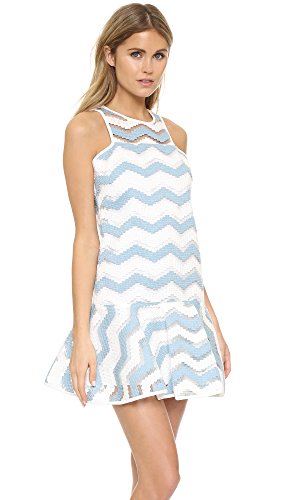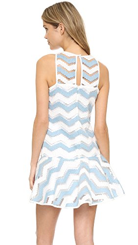 Bold chevron stripes weave through slender, yet substantial threads on this lightweight Milly dress. A flounced skirt flares from the straight, drop-waist bodice, and solid banding trims the edges. Button keyhole and hidden back zip. Lined.Feature