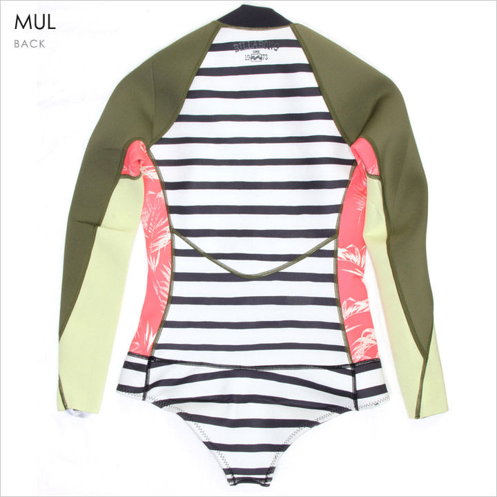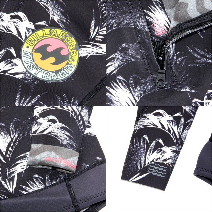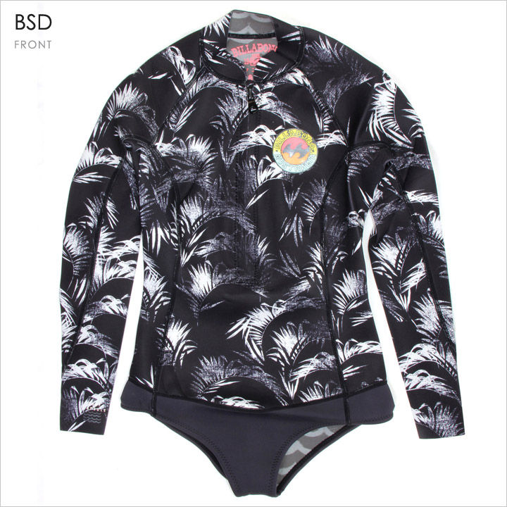 色あせたボタニカルプリントの切替えがどこかノスタルジックな雰囲気を醸し出す、ロングスリーブスプリングウエットスーツ。
