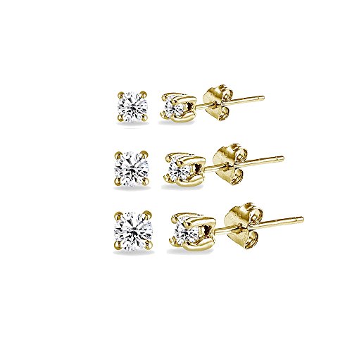 -. Feature : FEATURE - This fine jewelry set display three pair of prong set round cubic zirconia studs in various sizes. The set includes a pair of 3mm, 4mm and 5mm CZ earrings. This earrings set in fine jewelry should be an addition to your jewelry collection. It can be purchased as stud earrings for men, stud earrings for women or stud earrings for teen girls. These CZ earring studs are great accents for anything in your CZ jewelry for men, CZ jewelry for women or CZ jewelry for teens collections! / CRAFTED - The stud earrings set is created of fine .925 sterling silver or yellow gold flashed sterling silver. It is tarnish free and nickel free. The earring secure with post and friction backs. / SATISFACTION - We offer a 30-day satisfaction money back guarantee. If you're not satisfied for any reason, you will receive a full refund upon returning your purchase within 30 days. / PACKAGING - Jewelry packaged with a nice pouch ready for gifting. / ABOUT - Our jewelry collection is an assortment of hand selected fine and fashion jewelry. We carry an expansive selection of gemstones, cubic zirconia and precious metals. This includes a variety of pendant necklaces, dangle, drop and stud earrings, hoop earrings, tennis and line bracelets, rings, polished jewelry, birthstone jewelry etc.