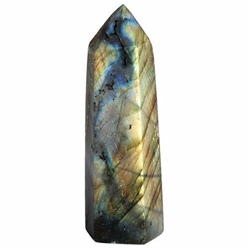 rockcloud Labradorite Healing Crystal Point Faceted Prism Wand Carved Reiki Stone Figurine