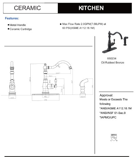Designers Impressions 650234 Oil Rubbed Bronze Single Handle Kitchen Faucet w/ Sprayer