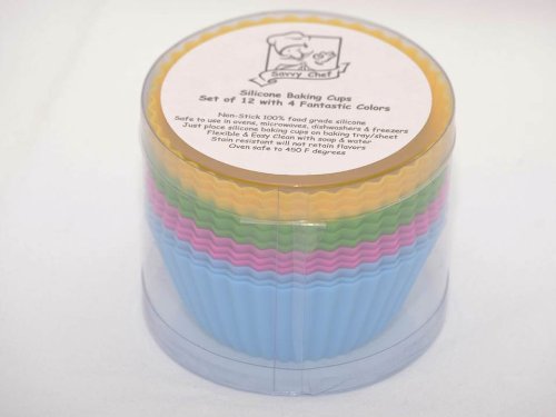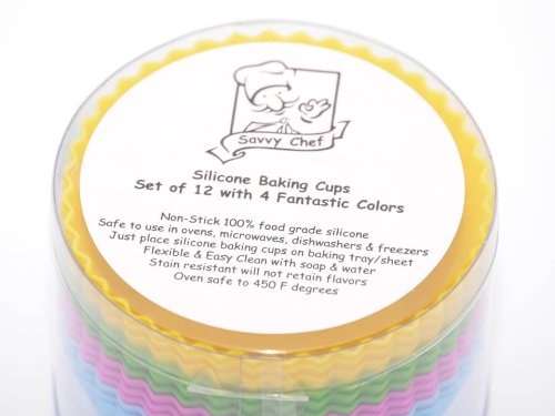 Savvy Chef Silicone baking cups, set of 12 reusable cupcake liners in 4 fashionable colors. Standard size with multiple uses and a!