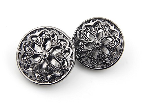Flower Hollow Metal Shank Buttons for Fashion Coats (Gun black/Silver /Gold /Tea gold, Pack of 6) (0.98 inches, Gun black)