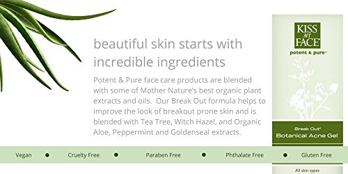 Studio : Kiss My Face Publisher : Kiss My Face Binding : Health and Beauty Product Description For daily acne treatment, recommend Break Out. The Tea Tree extract formula controls production of sebaceous oils, disinfects and neutralizes bacteria. The combination of organic herbs and aloe vera soothes and heals the skin, leaving it feeling fresh, clean, clear, and smooth. 0