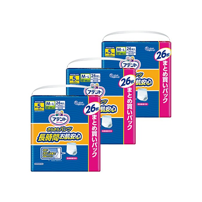 원본상품명: アテント 長時間パンツ M-L 男女共用 5回吸? 78枚(26枚×3) さらさらお肌安心 【介助で?ける方】