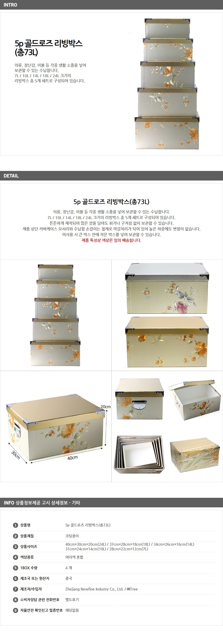 Case Gold Rose Living Box Total 73L Small Storage Box Multipurpose 5p
