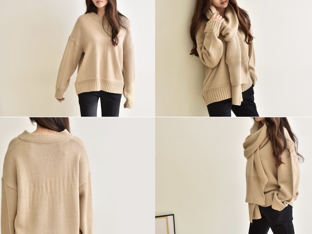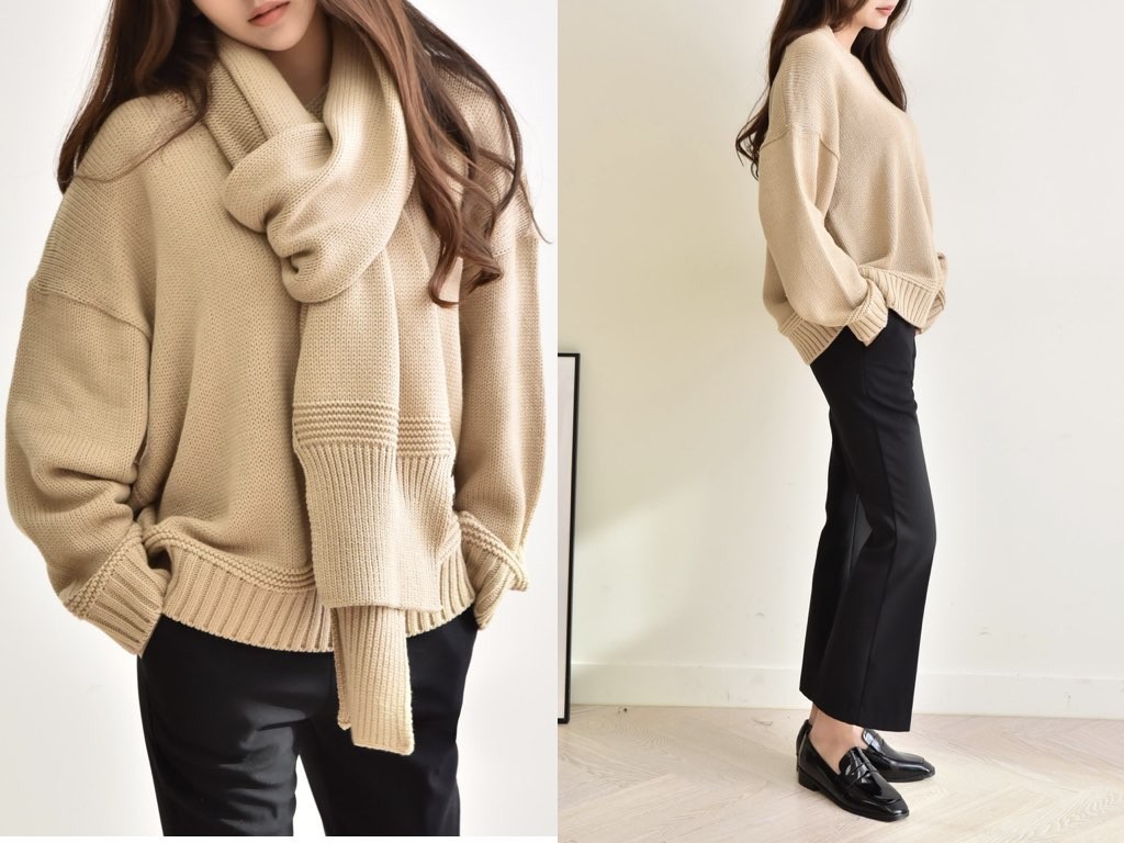4色展開のニット・マフラーのセットです。細部まで、とても丁寧なつくりとなっています。1.基本情報色:4色展開(ベージュ/ダークピンク/ブラウン/ブラック)サイズ:Free素材:アクリル製造国:korea2.サイズ情報肩幅:67身幅(胸断面):62cm腕の長さ:46cm 着丈(前):63cm※サイズは測定方法に応じて±2〜3cmの誤差があります。ご了承お願い致しますモデル着用サイズ:F※着用モデル(163cm、体重47kg、足のサイズ24.5cm)3.その他の情報厚み:中間透け感:なし伸縮性:中間裏地:なし洗濯方法:ドライ(クリーニング)[注意事項]お取り寄せ商品は、海外より仕入れるため納品まで約10日前後いただきます。また店舗でも販売しており、在庫切れになる場合もございます。ご了承お願い致します。
