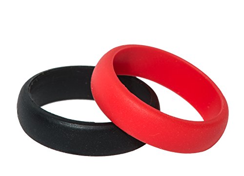 Silicone Wedding Band / Ring - 2 pack - Hypoallergenic, Medical Grade - by glo-go active - Women's / Ladies' - 5mm - Premium Quality - with gift box - Red and Black - Extended Sizes