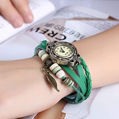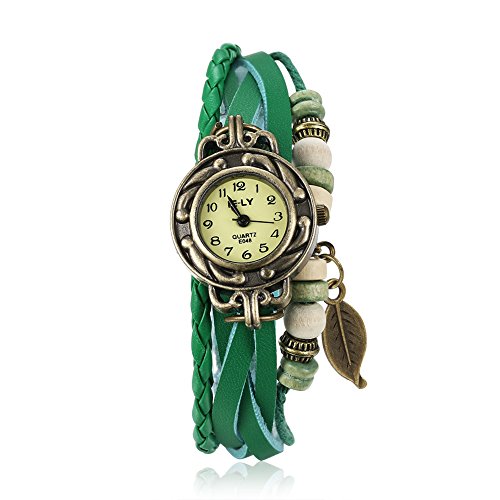 Naivo Women's Quartz Brass Plated Stainless Steel and Leather Casual Watch, Color:Green (Model: NAIVO-WATCH-1180)